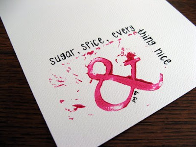 anyway, the original plan was to make this cream and sugar piece, but then i got babies on the brain and went ahead and experimented with a print for a little girl's room: sugar and spice and everything nice. since only the ampersand is a print and the rest is hard written by me, i can make a boy one, too, if i want to (snip, snails, puppy dog tails).